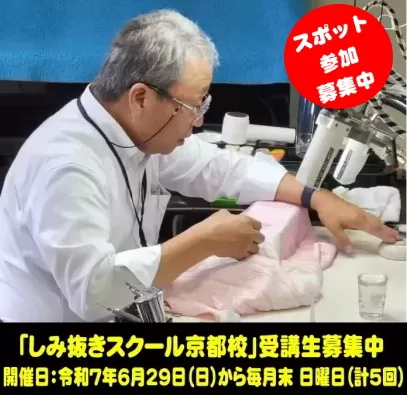 しみ抜きスクール京都校が、令和7年6月29日から毎月開校し、スポット参加者を募集します。 京技術修染会と廣瀬商事株式会社がバックアップする形で、特色あるカリキュラムを提供します。